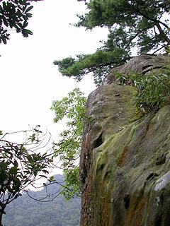 不過悶熱的天氣裡,一直循著岩稜阧上、阧上,難免會讓人覺得厭煩。就在這樣煩躁而會讓人產生退心的登山過程,我的情況是,總是會適時出現令我感到新奇的事物來振奮人心,以這次大溪金面山來說,就是只會在艱難的岩稜上現蹤,而且幾乎已經在台灣野外瀕臨絕跡的豔紅鹿子百合。