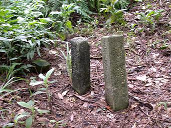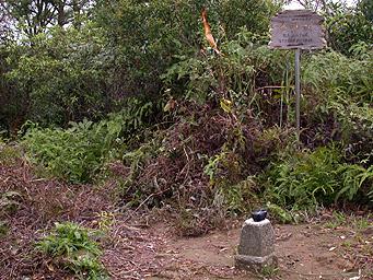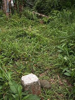 下降到可以看到高聳電塔的地方,再往前一點,陸續看到農宅,造林石柱,這裡應該有點產業道路可以到這裡。再往下切的叉路口,先繼續前行三分鐘找到金山面山三角點,與專賣局石柱,此處在樹林間無展望。到處找一下要往三角補點的路,不過雜林蔓草叢生,不知路在何方?快四點半了,天色也似乎有點暗,我還自己一個人在山中。