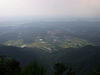 下了裸露岩稜之後,經過往五寮龍山岩的叉路,來到金面山的山腳下,先發五分鐘陡上到小鞍部之後,再花五分鐘從小鞍部攀岩上到山頂,首先來到的山峰展望比基點峰還要棒。可以看到整個大溪和橫跨大漢溪上的幾座大鐵橋。當然最醒目的還是就在金面山山腳下的大溪高爾夫球場與鴻禧山莊。總計我花了三小時才爬到山頂,幸好天氣還不算太熱,也沒大太陽。我望望左側較為低矮的山稜,延伸的末端的山頭立著一個長長的電塔,那似乎就是金山面山。我開始懷疑等一下我真的要沿著這條稜線走到金山面山,再從那下山嗎?看起來好遠啊。 而且我已經在山裡待了三個小時了。
