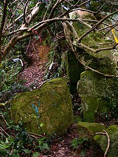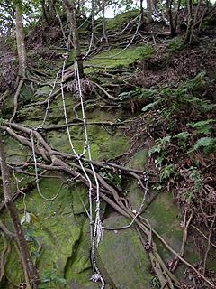雖然我可選擇抄捷徑下山,不過我最後還是往金山面山走了。這條路上循稜山徑的挑戰更勝十三份山到金面山,其中最險的當是數公尺高的垂直峭壁,我覺得厚重的登山鞋在此反而礙手礙腳。
