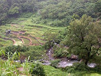 陽峰古道對面的流水、梯田 |