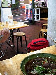 回到紗帽路上,我自己走回去鼎筆橋附近開車去,女孩們在候車亭中休息。自己一個人在大雨中漫步二十分鐘,車子一輛輛從身邊過又是不一樣的感受。取了車,開車去吃野菜拉麵,颱風天,客人不多,看到店外公路上車子在雨中疾駛而過,相對在店裡吃麵的我們格外輕鬆悠閒。