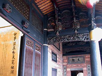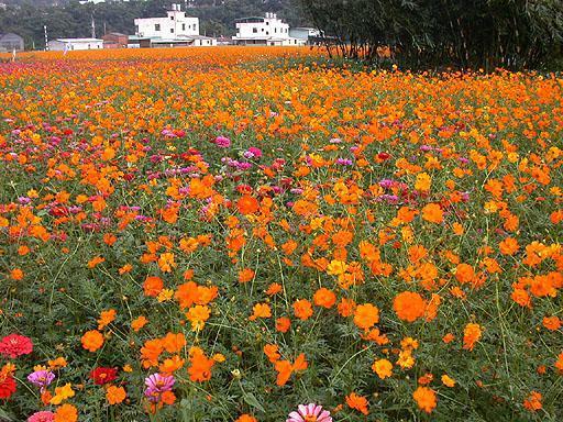 中餐在附近一間著名的老厝(老頭擺)吃客家菜。下午三點多續驅車前進大溪月眉欣賞大片的波斯菊花海。若從二高方向往大溪,一過武嶺橋之後就要馬上左轉就會進入月眉地區了。由於鄉間道路非常狹窄會車不易,最好是能用走的慢慢欣賞沿途多處花田,一直走還可走到李騰芳古厝,保留非常精緻古色古香的古厝,屋子裡頭有許多主人親題的對聯與字畫,這是與台北林安泰古厝最大不同之處。