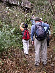 在中山峽谷步道的上端入口,也就是立正觀景台,因為視野展望極佳,以及附近一棵枯樹,一棵Tony兄被讚賞拍照拍得很有意境的枯樹。於是一夥人在這裡交流起攝影技巧起來。老恩兄當場示範如何搖黑卡。我則在跟字戀姐溝通如何藉枯樹為襯來取景..。這種和樂交流的場景正是我所樂見的。