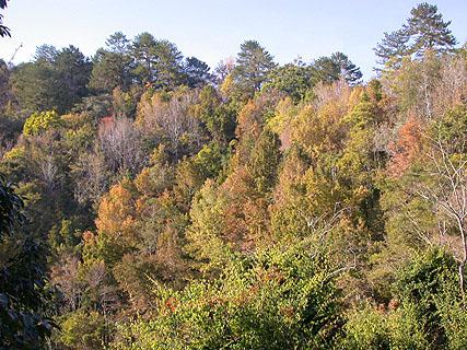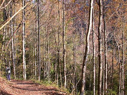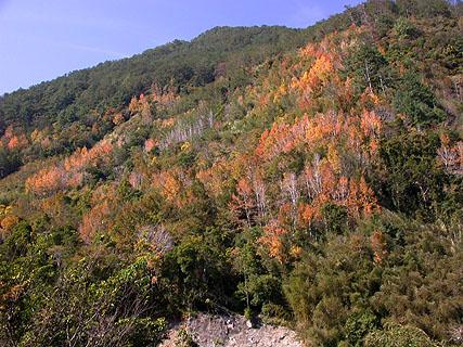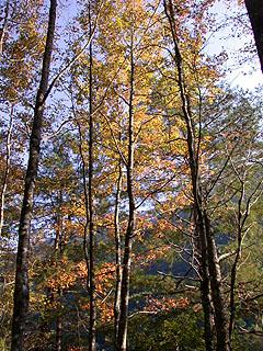 | 楓與松在午後的光影中 | 從16.5k眺望崩塌處對岸之大楓樹, 應為布奴加里山登山口附近 |