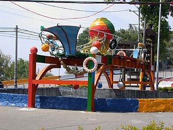 (往壢西坪地區的起點,裝置藝術綠海方舟意像,位於台三線147.5k)