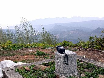 我本來是獨自上去找基點,因為我想這山頭雖小,不過還是有鬼針草之類的,怕沾黏了我們今日的嬌客。從原本就很短的水泥小路盡頭再走兩、三分鐘就可上到壢西坪基點所在。展望非常不錯,不過當時我無法分辨馬那邦山與大克山在哪裡。但此處就可看到剛才我們在V.V用餐所在的平台,也算有趣。