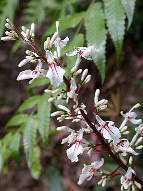看到電塔之後,再選左側山坡路上山,這時候已經在猴山岳的前額下方了。隨後來到一處岔路,左方再有陡上山徑可以從猴山岳前峰的側邊而上,避過直接從前峰攀爬而上的陡峭山崖。這條「前峰側邊」的山徑,比較原始,不過路旁的植物也比較有看頭,而且有許多野生的蘭花,明年的花期應可期待。