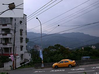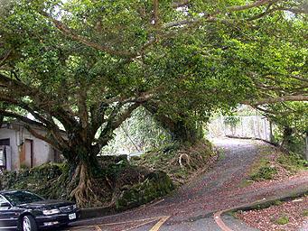 走到草湳榕樹下之後,今天的行程算是已走將近一半。此處為二格山主要登山口,兼有產業道路可上天南宮至深坑,登山客往來頻繁。我見餐廳中一群人正用餐品茗,於是也買了一罐金黃色冷飲,搭配從便利商店買來買兩個就打八折的飯糰,坐在路旁護欄吃著。