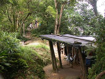 閒坐一旁不出聲自顧自地喝茶的我,突然記起字戀姐今日稍早應該曾帶隊來過此處。當然林家草厝登山客來來去去,林媽媽應該不會記得每一個人才對,何況我們兩年沒來了。但我還是試探的問她:早上有沒有一個團體來這裡,然後妳對她有沒有看起來很眼熟之類的..。(其實我在想字戀姐該不會把我們兩年前在這裡白吃白喝的往事給說出來吧?)。林媽媽還一臉茫然的沒答話,一旁的山友卻先開口說:今天這裡的人來來去去好幾隊了,每個都說認識林媽媽的,這也不足為奇。我表面雖然不動聲色,但心裡不免要微笑了。方才你們拿出地圖(有藍天牌的,有Tony牌的..)研究半天,還說今日要不要去走的珍妮佛路,就是由這位字戀小姐把它發揚光大的。