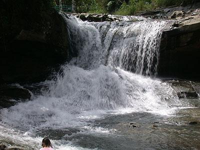 下了山,在十分的遊客中心三樓用餐。有冷氣,有餐飲,有店家的兩個小女兒陪著聊天,窗外還有基隆河的激流可觀。這樣的行程舒服愜意,不過這時又有朋友打電話來約,說今天有沒有要帶他們上山走走之類的。我今天已經在山上水邊「走走」了。不過今天十分這邊的行程倒是已經差不多了,於是轉念一想,選了另一個離南港比較近的地點--七堵草濫泰安瀑布。這個瀑布離馬路邊不用三分鐘,又有許多涼亭之類的,很適合飼料雞群們遊蕩累了之後,還可以輕易找個地方打牌。
