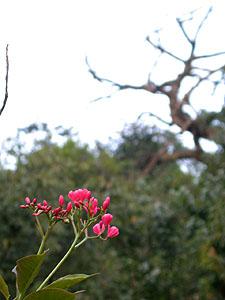 至於Leaf園呢,只剩下中餐合菜,原來的西餐與養生膳都沒有了,跟我兩年前來的時候不一樣,連紅磚厝那邊也暫時不開放,據說另有安排。我其實就是要到紅磚厝那裡去用餐,比較有區隔,而且重要的是..萬一有玩牌的話也不會打擾到其他客人。小小的私心破滅,幸好庭院的紅花開的成蔟成群,煞是美麗,也算是聊勝於無了。