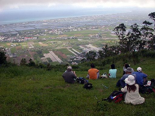 於是就在眾人地毯式蒐索中,小金面山的圖根點果然先被我給看到了。憑的並不是感應,而是經驗:布條群集附近,應有基點。後來在第八彎處我們又要往回尋找古道上的土地公廟,蕭郎率先往下往芒草叢中探,終究徒勞無功。這時Tony兄又開玩笑問我,這回有沒有感應到什麼?哈哈,我感應到的是往上爬到草坪之上必有好風景可觀。