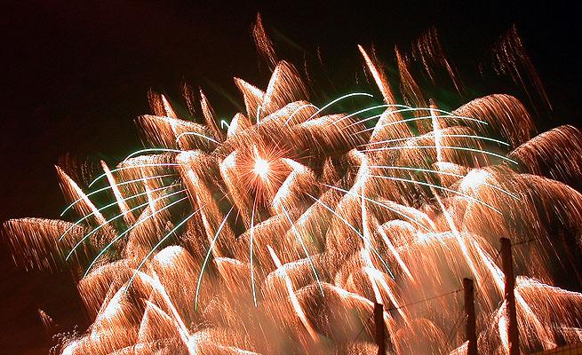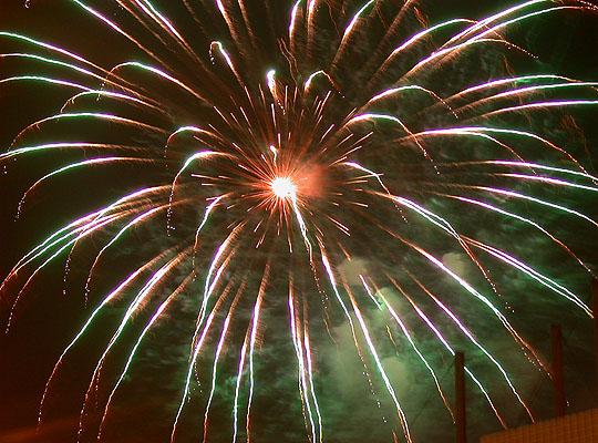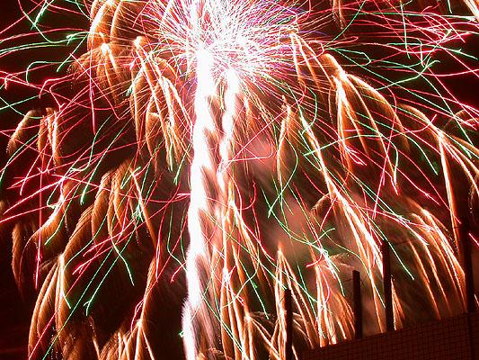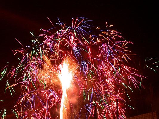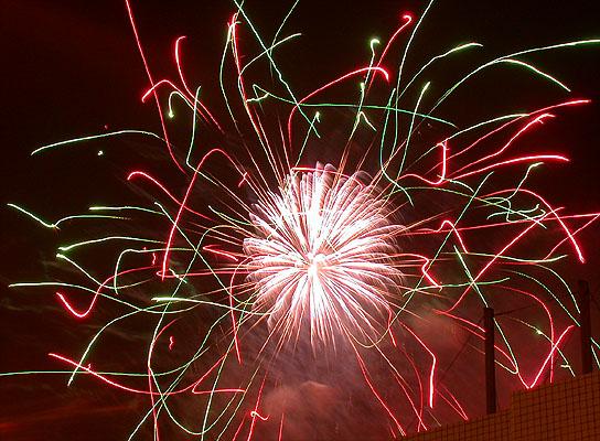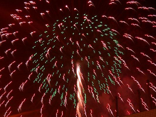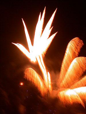 既然不知道煙火的名堂,那就自己胡亂編吧。關關雎鳩,在河之洲,窈窕淑女,君子好逑。我所拍的浴火重生的天堂鳥應差可比擬。至於其他煙火會亂竄的,反而像是UFO登陸地球到處放電,不過這樣的講法實在不夠浪漫。