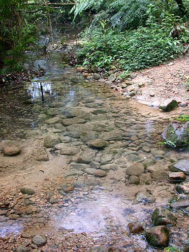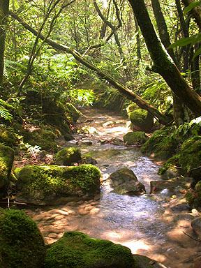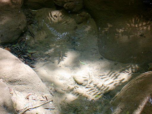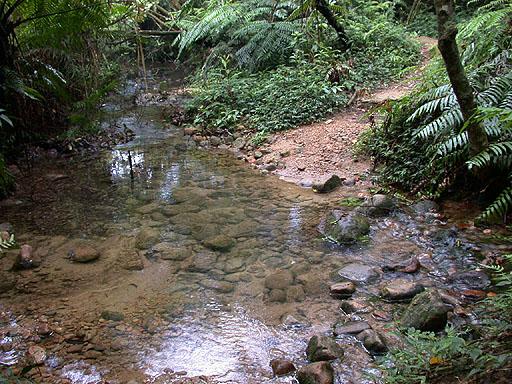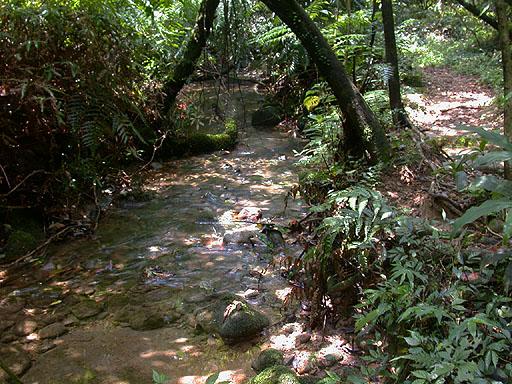 過了往帕米爾公園的岔路,在要往萬溪產業道路準備上坡離開的最後水邊,我不經意的發現,流水經過此處時雖被兩旁岩石侷限住了但卻也不顯湍急,而正午的陽光穿透樹梢直落於此,讓這水清澈透明,美麗不可方物。偶有落葉浮過水面,葉與其水中影之間,那種似有若無,如虛如幻,確實存在但不可捉摸。此等意境原只可意會,不能言傳。看著望著,一時之間痴了空了,腦中清明再無任何雜念,剎那已成為永恆。