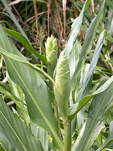 步道只有一開始從碩仁國小起登時需要上一段坡,後面的路段幾乎無太大的起伏。於是輕鬆來到合谷瀑布觀瀑台,水量不豐,我對此沒有評論。來到合谷瀑布上游,準備過溪,溪岸附近將是野薑花開的最多的地方,不過這裡的野薑花正含苞準備中。準備中也有準備中的好看。
