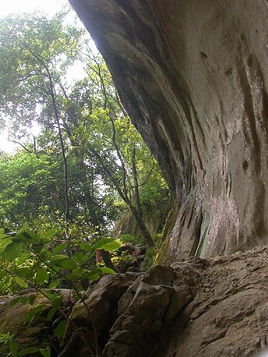 爬上其實沒有很簡單卻也不能算太難的崖梯,再走一小段就來到枇杷洞瀑布。這個瀑布置身在一個幾乎封閉山谷中,我在溪水岩盤附近繞來繞去四處拍照。雖然也取了很多張瀑布的相片,不過最後還是認為由谷口回望的意境最深邃。至於枇杷洞瀑布旁 要上到瀑布頂的崖壁 也頗為可觀。於是雖然再度重遊,但是對於景物還是覺得新鮮,畢竟距離上次走到此處又已經過了四年。(什麼?四年!!我一直以為上次來此不過才是這一兩年的事!!)