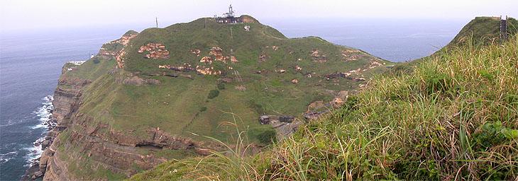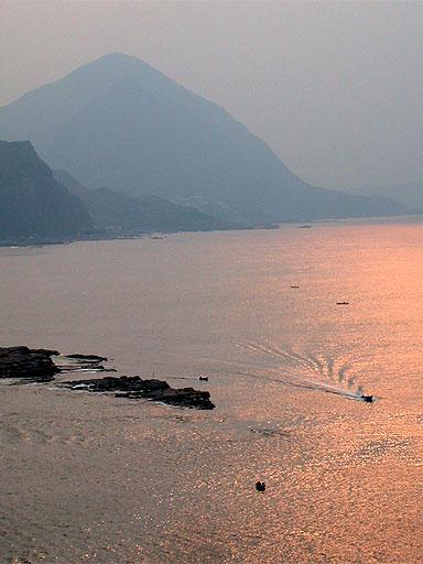 (鼻頭角燈塔附近看金黃色夕照海面)