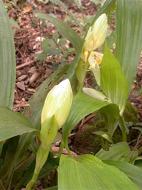 陡上的石階結束,開始濕滑的山徑,但是坡度也沒有一開始那麼陡了。我突然想到此處林間有沒有蘭花呢?就是這麼神奇,當我開始思念蘭花時,如火焰亦如稻穗般的根節蘭黃花串就被我隨意一張望就看到了,而且是在離步道有些距離的亂草叢中。後來陸陸續續又在步道沿途看到許多正要開但未開被花鞘包裹起來青澀的嬌模樣,活像是..包心菜。哈哈,形容成包心菜又是一點也不浪漫了。