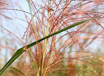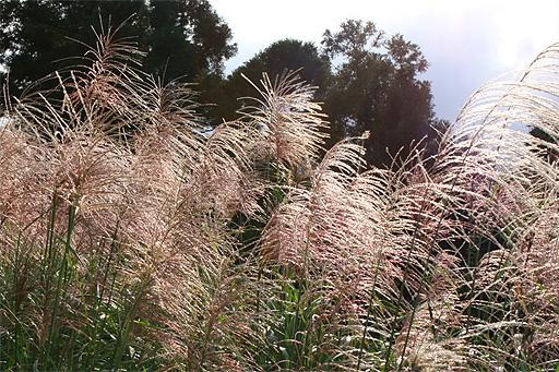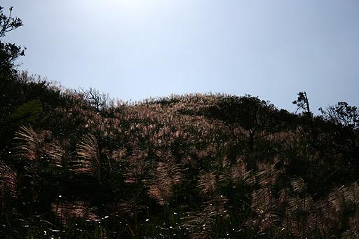 我在三點多陽光還甚強的時候上山。向基隆山那一面紅芒隨風伏偃雖然也稱丰姿綽約,不過我卻更愛追尋那逆光的那一面山坡上,芒穗末端反射的白光炫燿奪目,令人不敢逼視的光中彷彿有著什麼,讓人不捨相隨。