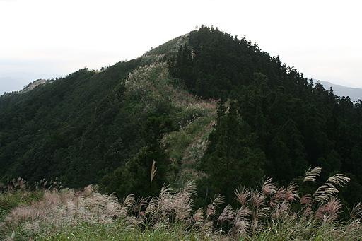 五分山公路除了賞芒之外,不可不看的是那直斜下山坡的一大片杉林。多年前曾聽聞全是一位老先生一個人種的,也不知道是真是假?看過了公路端的芒花,往西峰涼亭的路上又岔上小徑順手再撿了五分山的兩顆三角點,這麼輕鬆愜意又豐富的行程要去哪裡找?及至來到西峰涼亭,展望絕佳毋庸贅言,往暖暖方面正風起雲湧,而循稜經望古山往姜子寮山的稜線歷歷在目。靠近五分山這端的石板步道尤其清楚,步道兩旁的秋芒如同拱衛的城橋,如果冬烘先生有為之取名的權力,願為其命名為芒花長城步道。