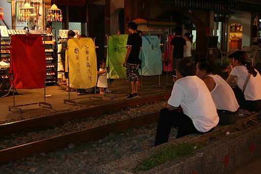 下了五分山之後,便沿106公路來到十分老街閒逛。十分老街的特色就是火車直接貫穿整個街區。因此走在老街上,看火車遠遠的駛過來越來越靠近,而街上的行人還是悠哉悠哉的,也是奇特景象。於是火車為十分帶來觀光客,觀光客到了十分後也算有事可做,那就是在天燈上寫下心願然後施放。