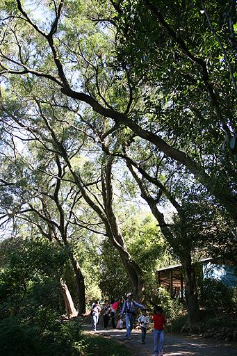 在農莊外頭停好車,走往曬柿餅的場所,這條鄉間小路便是一個奇妙的體驗。沿途有高聳的樹木,入口還有一道開得正艷的九重葛花門。農莊裡裡外外都是人,好不熱鬧。一盤盤紅橙橙的柿子是看到了,不過我對於正圍著翻轉柿子的阿嬷拍照的攝影者的千奇百怪的攝影姿態比較有興趣。一大群攝影者就像是看到獵物的鯊魚群,眼睛盯緊獵物;為了搶佔最佳攝影位置,就是旁若無人;為了取得最佳攝影角度,可以讓身體委曲求全,要他趴在地上拍也許都可以。這讓我很想把廁所的名聯拿來形容這幅攝影者奇景,雖然這比喻有點不倫不類:貞潔婦女進來寬衣解帶,英雄好漢到此卑躬屈膝。