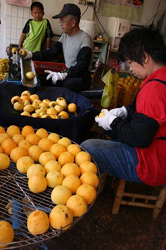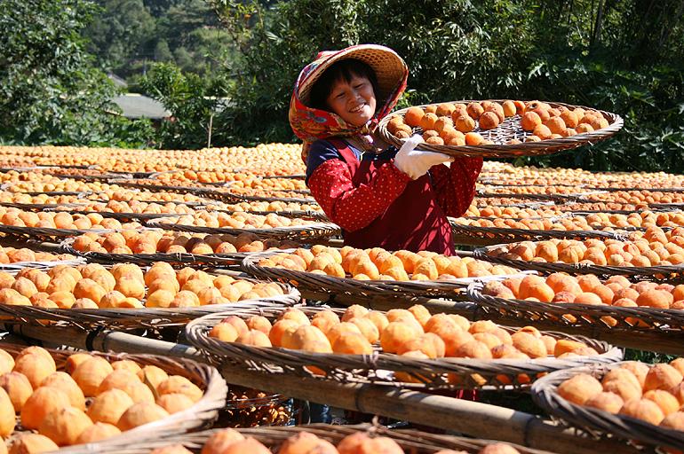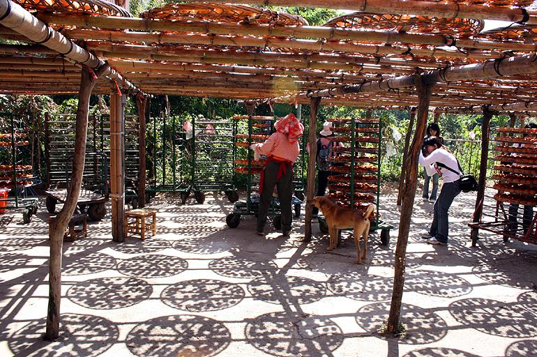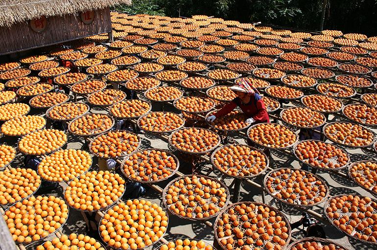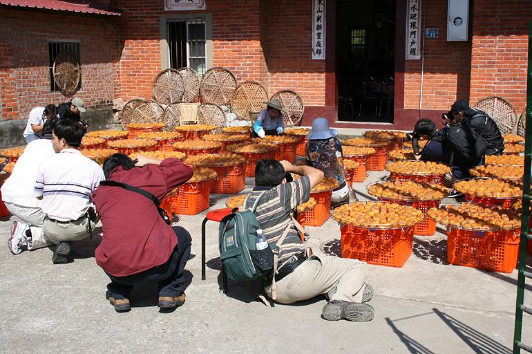 曬柿場裡面的村夫農婦們(沒有不敬之意)倒也都習慣了成為鏡頭前的焦點。連背已經直不起來的阿嬤都可以成為模特兒了;農莊裡面比較不害羞的大嬸們更是順應觀眾要求,一再重複同樣翻曬盤中柿子的動作讓貪得無厭的攝影者拍照,因為攝影師總是想讓模特兒對著他的鏡頭,而且還得正好有最佳表情。