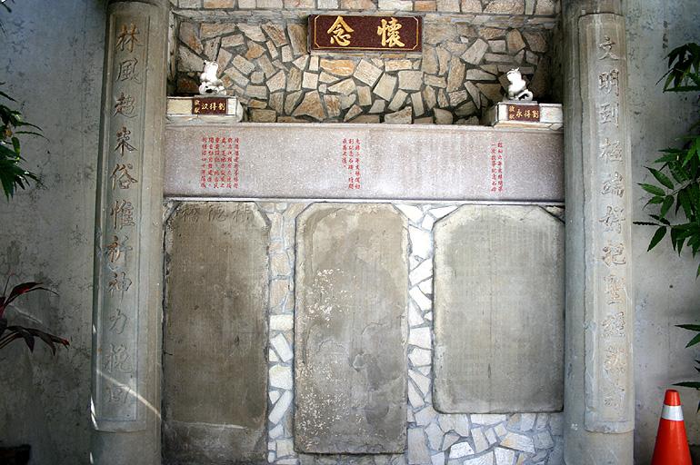 由左而右:積德橋(明治42年)、文林閣初創碑(光緒2年)、第一次改建石碑(昭和6年)