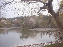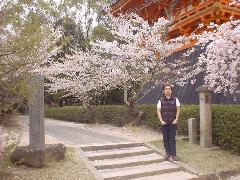 從金閣寺往龍安寺方向走(西南方),這條路叫做????之道(實在忘了),沿著衣笠山環繞,也算是一條標準櫻花夾道的優雅山路,不想用走的話,巴士也很多。至於中餐是在沿途一家餐館解決的,吃的是豬排定食,還特別點了餃子,比較日本賣的跟台灣日式餐館賣的有無不同。好玩的是,像這類的小餐館也會放一些漫畫,我所熟悉的是包括美味大挑戰、GTO等等。續往前走,途經立命館大學,八卦一下,有一個偶像叫倉木麻衣(就是現在唱華視柯南片尾曲的歌手)好像要在這間學校入學。