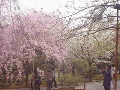 另外這裡還有日本最早引進的椿花。至於步出殿外,走到右側幽遊庭園,庭園中的櫻花實在太美了,不知怎麼形容,枝垂櫻也是甚多,微風吹起,枝葉扶疏,搖曳生姿。可以浸沐在櫻花雨中,漫步其中,就像是走在櫻花走廊之中。(見相片,If existed)