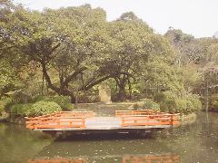 二是各式品種椿花,每種椿花皆有其名。如果看過金庸的天龍八部,就知道書中不同的茶花的命名方式依據其花朵、花色、斑紋來取名字真是有趣,譬如說有什麼美人抓破腮的...,來這裡的椿園,也可以看到這裡的花與它們獨特的名字。為什麼我在台灣就不曾看過類似這樣很專業的植物園地呢?至於神苑中另一處藤園,應該是開花時節還沒到吧。