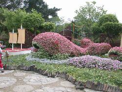 至於今年池裡面不知道什麼時候種了海芋,如今倒是開了花。又在王陽明像附近發現一株開得不錯的白色花瓣參著淡淡粉紅的杜鵑,懂得欣賞的大概只有我一人,因為大家都被附近的花鯨魚與噴水池所吸引了。