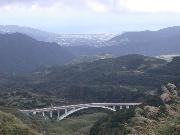 走菁山路、中湖戰備道,山青翠。過冷水坑後,以往此處所見是雲海一片,如今陽光普照,視野豁然開朗,在高高山路上首度能遠望馬槽橋,眺望金山湛藍海岸 ,又是陽明山一景。