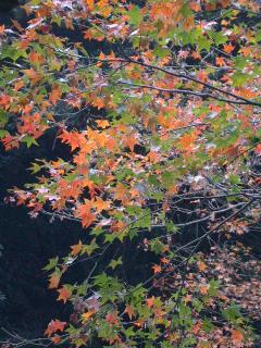 為了趕在五點前回到停車處,只能加快腳步下到溪谷。來到冷泉附近溪谷,而楓果然未讓我失望,依約紅了。看楓紅的景況,大概可以持續一兩個禮拜。